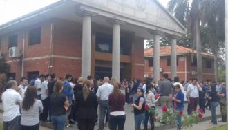 Funcionarios de la Universidad Nacional de Asunción (UNA) se manifestaron este viernes en el Rectorado. Están en contra del recorte presupuestario.