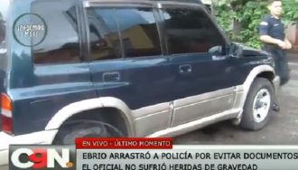 Un hombre totalmente alcoholizado protagonizó dos accidentes, primero chocó contra un vehículo y en su fuga se llevó por delante a un oficial de policía. El agente quedó herido luego de ser arrastrado por unos 200 metros.