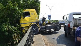 Un camión de gran porte atropelló la barrera de protección del viaducto de Madame Lynch, provocando el cierre temporal de la avenida y causando caos vehicular.