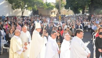 La Misa en honor a la Virgen de la Asunción se vio marcada por momentos de tensión entre campesinos, defensores del parque Pavetti, personas ligadas al caso Curuguaty y el intendente de Asunción Mario Ferreiro.