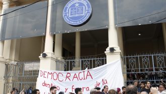 Estudiantes de derecho exigen el levantamiento de la toma ya que consideran que no es la forma correcta de manifestarse. La medida de fuerza continuará.
