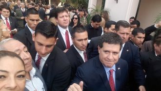 El Presidente de la República Horacio Cartes habló ante la multitud que llegó hasta Mburuvicha Róga para felicitarlo por su cumpleaños. No perdió la oportunidad para hacer referencia a un adversario político.