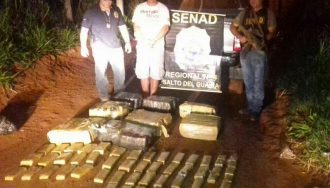 Agentes de la Senad lograron decomisar una importante cantidad de drogas en la zona de Salto de Guairá, en el límite entre Paraguay y Brasil.