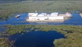 El hospital en construcción de Fuerte Olimpo quedó aislado por agua. Aseguran que el agua no ingresó, pero las obras están suspendidas.