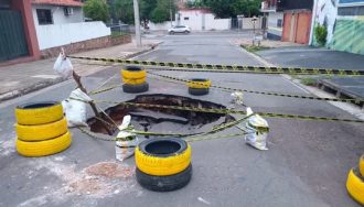 La intersección de las calles Nicaragua y Pozo Favorito del barrio San Vicente ha quedado bloqueada por un enorme bache que impide el tránsito vehicular.