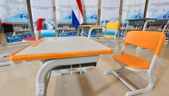 Pedro Alliana visitó el Centro Regional de Educación de Pilar donde alabó los pupitres adquiridos por Itaipú a USD 106 cada uno, frente a los USD 22 de mercado.