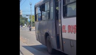 Un video viral muestra el momento exacto en que la puerta trasera de un bus se desprende mientras circulaba, evidenciando el deterioro del transporte.