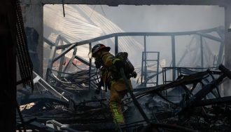 Diez compañías de bomberos trabajan en la extinción del incendio en depósito de prendas deportivas. El humo tóxico obliga a extremar precauciones.