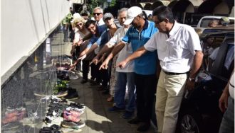 Protesta simbólica de jubilados en Asunción por cuatro meses sin cobrar haberes. Señalan deudas millonarias de la administración municipal.