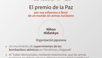 Nihon Hidankyo, organización japonesa de supervivientes de Hiroshima y Nagasaki, gana el Premio Nobel de la Paz 2024 por su lucha contra las armas nucleares.