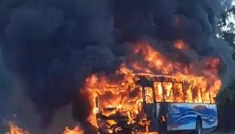 Colectivo de la línea 242 se incendia en la ruta Areguá-Ypacaraí