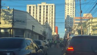 Protestas indígenas frente al Indi e Indert provocan colapso del tránsito en Asunción. Policía interviene para dirigir el flujo vehicular.