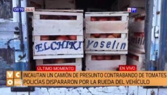 Este jueves se incautó una gran cantidad de tomates ingresados desde Argentina al país de contrabando. El chofer encargado del camión, lo abandonó y huyó.