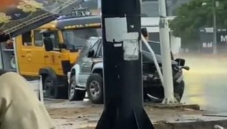 Un conductor se quedó dormido al volante y chocó contra un cartel del MOPC en la ex Transchaco. Fue trasladado al Hospital de Traumas.