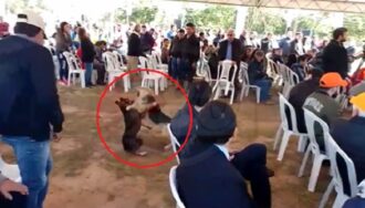 Una pelea de perros irrumpió un discurso de agradecimiento hacia el Presidente de la República, Mario Abdo Benítez. El tenso e inusual momento fue captado por los presentes.