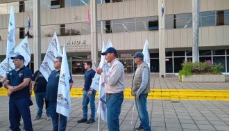 El sindicato de la ANDE realiza un paro y movilización hasta el Congreso en rechazo al proyecto que fusiona instituciones estatales.