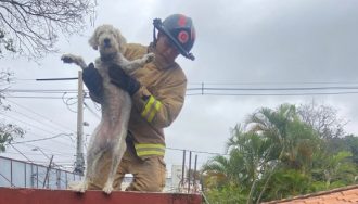 Theo, un perrito travieso de Villa Elisa, fue rescatado por bomberos tras subir al techo y no saber cómo bajar. Ya es reincidente.