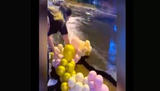 En Lambaré, vecinos marcaron un bache con globos frente a la casa de un concejal como protesta contra el abandono de calles por la municipalidad.
