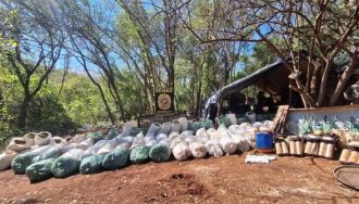 Agentes de la Secretaría Nacional Antidrogas (Senad) descubrieron un campamento moderno con generadores eléctricos y más de cuatro toneladas de marihuana en proceso de prensado cerca de Pedro Juan Caballero.