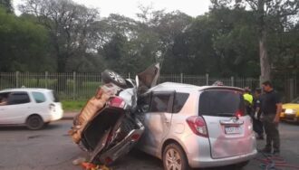 Dos personas fallecieron y dos resultaron heridas en un fuerte choque frontal registrado este jueves en la ruta Transchaco, frente al Jardín Botánico de Asunción.