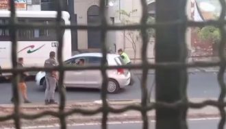 Un incidente de tránsito terminó con disparos intimidatorios y la detención de un hombre armado cerca del Colegio Cristo Rey de Asunción.