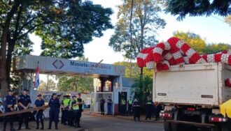 El intendente de Ciudad del Este, Miguel Prieto, acudió a la Fiscalía con 17 camiones repletos de adornos navideños utilizados en el proyecto “Navidad Sustentable” tras una denuncia por presunto mal uso de recursos.