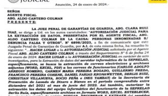 Documento revela que la jueza Clara Ruiz Díaz autorizó, en enero pasado, la extracción de datos de correos y computadoras de Seprelad, solicitada por el fiscal Aldo Cantero en su investigación sobre presuntas denuncias falsas contra Horacio Cartes.
