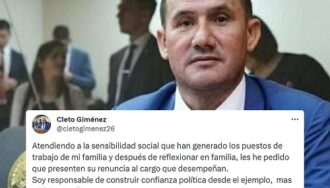 El diputado Cleto Giménez pide la renuncia de sus hijas de sus cargos en el Congreso, en un giro frente a acusaciones de nepotismo.