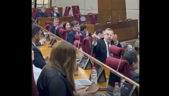 Durante un debate legislativo, Yamil Esgaib realizó gestos obscenos contra Raúl Benítez.