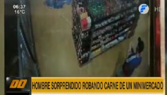 Un hombre ingresó a un local de Biggie y robó carne por un valor aproximado de G. 400.000, de acuerdo a lo que se puede ver en imágenes. La policía logró identificar al sujeto que finalmente fue detenido a unas seis cuadras del lugar.