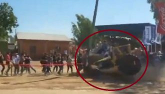 Una carrera entre un tractor y un automóvil se buscó desarrollar en la Expo Rodeo de la Colonia Neuland de Boquerón, en el Chaco. La improvisada competencia terminó en un accidente del que salieron heridas seis personas, afortunadamente ninguna de gravedad.