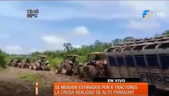 Seis tractores remolcaron a un camión transganado después que este haya quedado varado a causa de las malas condiciones del camino. El hecho se registró en Alto Paraguay.
