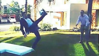 El periodista argentino Manuel Sánchez intentó realizar la “chilena” de Cristiano Ronaldo pero la jugada terminó llevándolo al hospital. El hecho se registró durante la grabación de un programa en un canal cordobés.