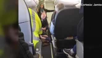 Una mujer trató de abrir la puerta de emergencia de un avión en pleno vuelo. Un pasajero logró controlarla, pero se vivieron momentos dramáticos.