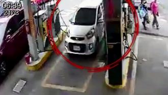 Imágenes del circuito cerrado captaron el momento en que una joven recibió una tarjeta en una estación de servicios, la que presumiblemente le causó una reacción alérgica. La misma le fue entregada por un playero del lugar.