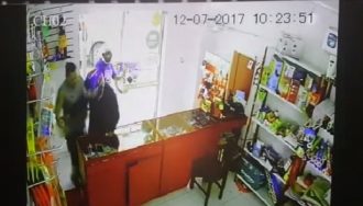 Dos hombres a bordo de una motocicleta descendieron en una tienda y se llevaron dinero, además de otros artículos de valor. Todo quedó grabado en un video de cámara de seguridad.