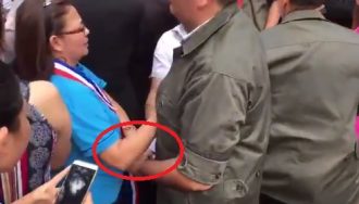 Un video que fue compartido en redes sociales muestra cómo guardias del Presidente de la República Horacio Cartes rompieron los carteles de reclamos de estudiantes y docentes.