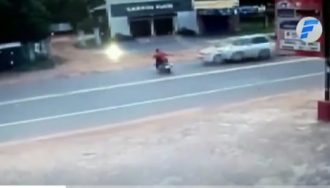 Un hombre se encuentra en estado grave tras sufrir un accidente a bordo de su motocicleta. Un video retrata cuando la víctima realiza el giro a la izquierda y una camioneta lo embiste de manera violenta.