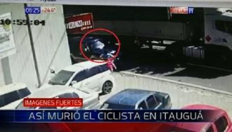 Un video de circuito cerrado revela cómo fue el accidente, donde un ciclista muere arrollado por un camión de gran porte. De acuerdo a las imágenes un vehículo mal estacionado sobre la ruta principal, provocó que el joven, de 24 años, cayera al pavimento.