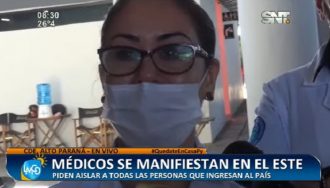 Integrantes de la Asociación de Médicos del Alto Paraná se manifestaron este martes en la zona primaria del puente de la Amistad, exigiendo controles más rigurosos a personas que ingresan al país.
