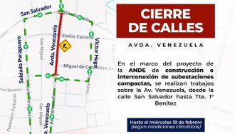 La Municipalidad de Asunción bloquea la Avda. Venezuela desde San Salvador hasta Tte. 1º Benítez por obras de la ANDE. Hay dos desvíos.