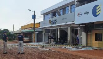 Un grupo comando explosionó y robó la sucursal del Banco Nacional de Fomento en Natalio, Itapúa. Durante la madrugada, la Policía Nacional halló dos vehículos abandonados presuntamente utilizados en el asalto. Bomberos voluntarios asistieron a un hombre herido de bala.