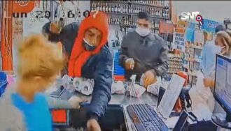Cámaras de circuito cerrado muestran como actuaron dos delincuentes quienes asaltaron un local comercial en Lambaré.