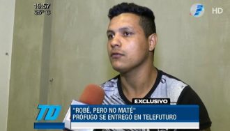 Unos de los sospechosos de participar del intento de asalto a una despensa en el barrio San Isidro de Lambaré, se presentó en la tarde del lunes en los estudios de Telefuturo para dar su versión de los hechos y posteriormente entregarse a las autoridades.
