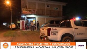 Una joven madre recibió un balazo en la cabeza en medio de un asalto que fue perpetrado en un negocio que atiende con su madre. La misma fue llevada hasta un hospital donde sigue internada luchando por su vida. Ocurrió en Ñemby.
