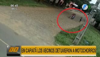 Una mujer fue víctima de asalto por parte de dos motochorros en la ciudad de Capiatá. Un automovilista se percató de lo sucedido, persiguió y chocó a los delincuentes.
