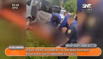 Un vehículo atropelló una barrera policial y posteriormente fue abandonada por sus ocupantes. La Policía halló un cadáver en el interior.