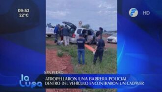 Dos hombres que circulaban a bordo de un automóvil atropellaron una barrera policial y abandonaron el vehículo con un cuerpo en su interior. Ocurrió en zona de 25 de Diciembre del departamento de San Pedro.