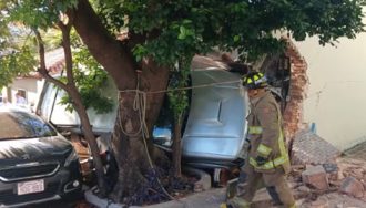 Una camioneta quedó incrustada en un local tras un choque en Asunción. A pesar del impacto, no se registraron heridos.