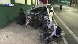 Un hombre perdió el control de su vehículo, volcó y terminó contra la muralla del Batallón Escolta, en Asunción. A pesar del fuerte impacto, los ocupantes resultaron ilesos.